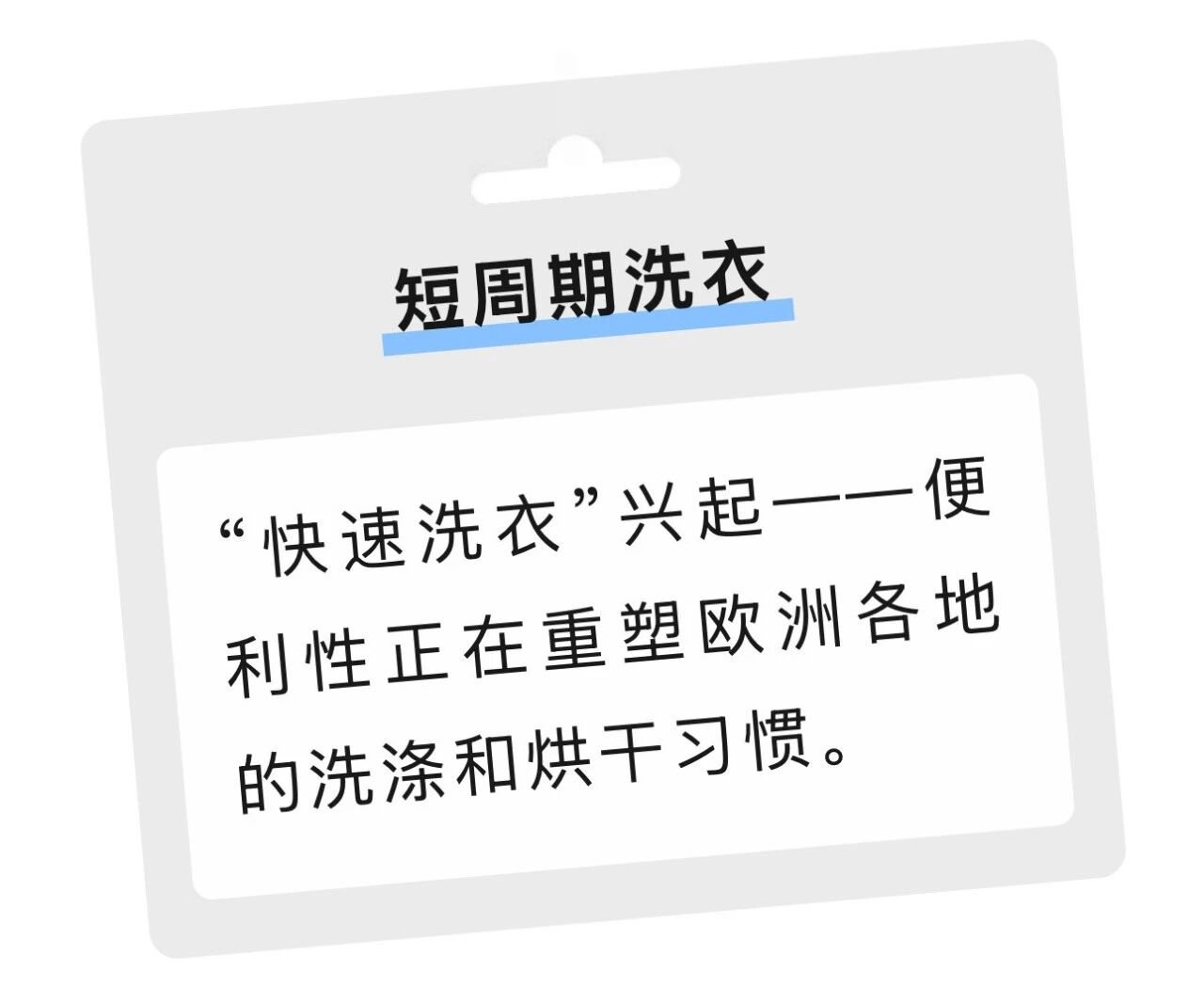 该报告基于对2024年该企业联网电器2260万次洗涤和600万次烘干的分析,以及对14个欧洲国家超过15000名成年人的调查研究。报告强调了人们向更快速的洗衣方式转变的明显趋势。