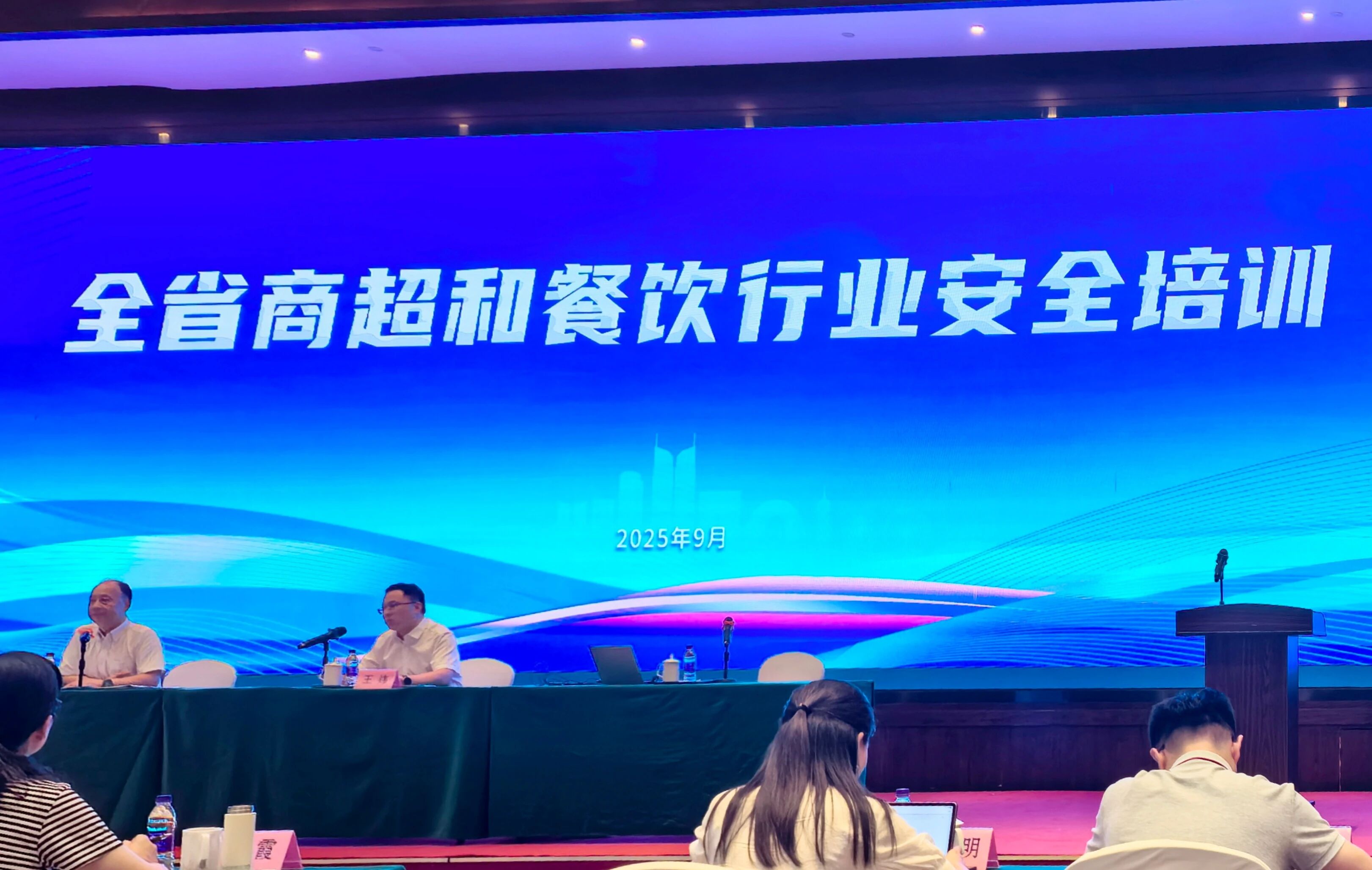 为迎接国庆、中秋佳节,进一步强化商贸服务业安全管理水平,深入实施提振消费专项行动,2025年9月16日至17日,浙江省商务厅在湖州市长兴县太湖龙之梦瑞峰国际大酒店举办全省商超和餐饮行业安全培训。本次培训由省商务厅主办,湖州市商务局、长兴县商务局协办。